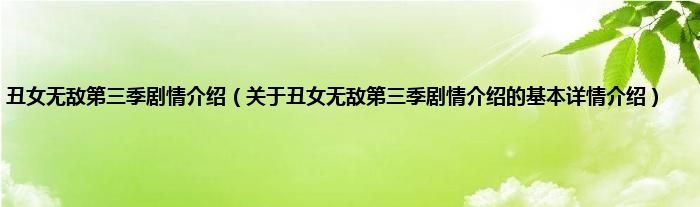 丑女无敌第三季剧情介绍(关于丑女无敌第三季剧情介绍的基本详情介绍)