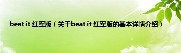 本文关于beat it 红军版的基本详情介绍就讲解完毕,希望对大家有所帮助。