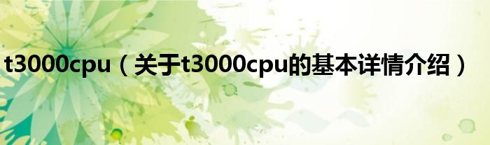 本文关于t3000cpu的基本详情介绍就讲解完毕,希望对大家有所帮助。