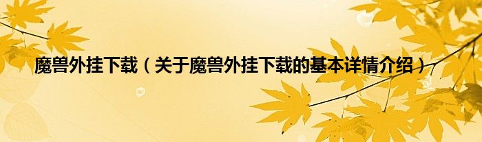 本文关于魔兽外挂下载的基本详情介绍就讲解完毕,希望对大家有所帮助。