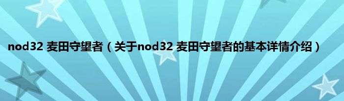 本文关于nod32 麦田守望者的基本详情介绍就讲解完毕,希望对大家有所帮助。