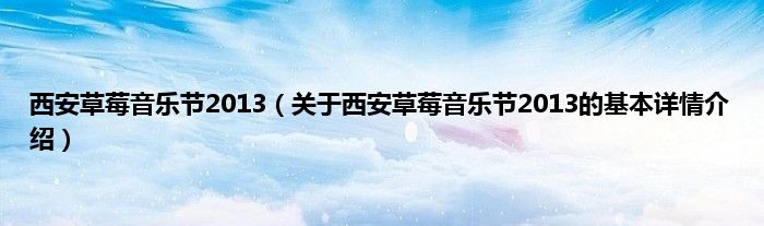 本文关于西安草莓音乐节2013的基本详情介绍就讲解完毕,希望对大家有所帮助。