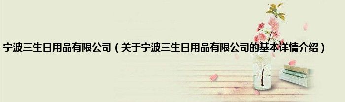 本文关于宁波三生日用品有限公司的基本详情介绍就讲解完毕,希望对大家有所帮助。