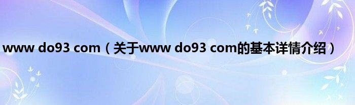 本文关于www do93 com的基本详情介绍就讲解完毕,希望对大家有所帮助。