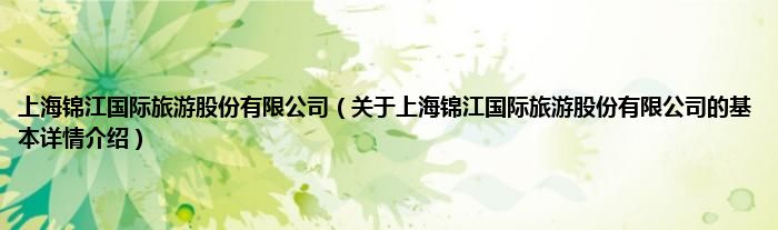 本文关于上海锦江国际旅游股份有限公司的基本详情介绍就讲解完毕,希望对大家有所帮助。