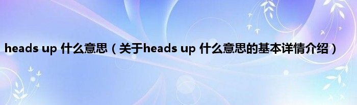 本文关于heads up 什么意思的基本详情介绍就讲解完毕,希望对大家有所帮助。