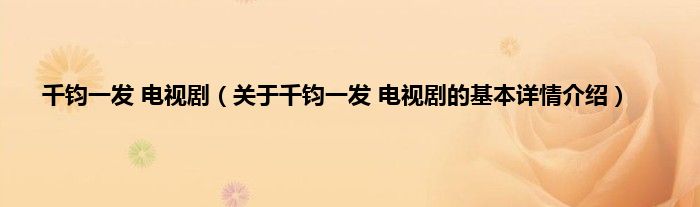 本文关于千钧一发 电视剧的基本详情介绍就讲解完毕,希望对大家有所帮助。