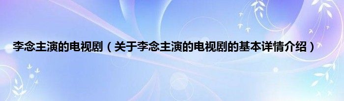 本文关于李念主演的电视剧的基本详情介绍就讲解完毕,希望对大家有所帮助。