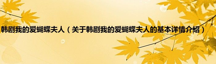 本文关于韩剧我的爱蝴蝶夫人的基本详情介绍就讲解完毕,希望对大家有所帮助。