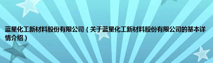 本文关于蓝星化工新材料股份有限公司的基本详情介绍就讲解完毕,希望对大家有所帮助。