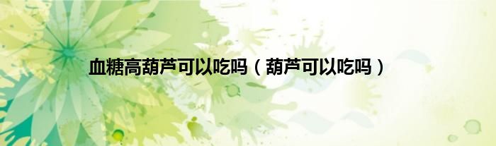 以上就是【血糖高葫芦可以吃吗,葫芦可以吃吗】相关内容。