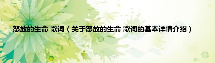 本文关于怒放的生命 歌词的基本详情介绍就讲解完毕,希望对大家有所帮助。