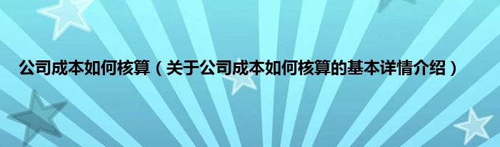 本文关于公司成本如何核算的基本详情介绍就讲解完毕,希望对大家有所帮助。