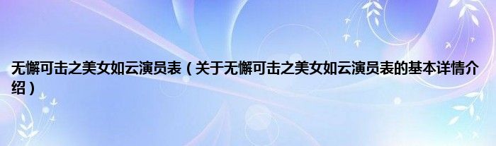 本文关于无懈可击之美女如云演员表的基本详情介绍就讲解完毕,希望对大家有所帮助。