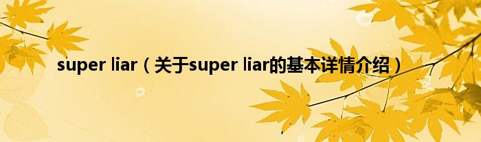 本文关于super liar的基本详情介绍就讲解完毕,希望对大家有所帮助。
