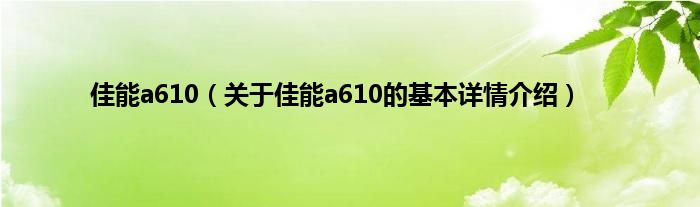 佳能a610(关于佳能a610的基本详情介绍)