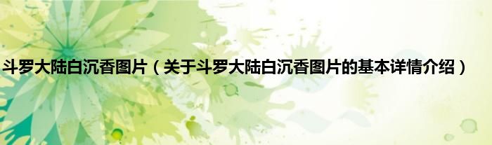 斗罗大陆白沉香图片(关于斗罗大陆白沉香图片的基本详情介绍)