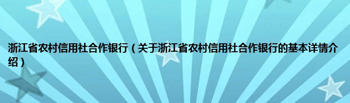 本文关于浙江省农村信用社合作银行的基本详情介绍就讲解完毕,希望对大家有所帮助。