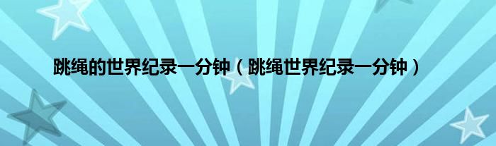 以上就是【跳绳的世界纪录一分钟,跳绳世界纪录一分钟】相关内容。