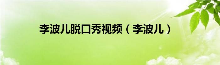 以上就是【李波儿脱口秀视频,李波儿】相关内容。