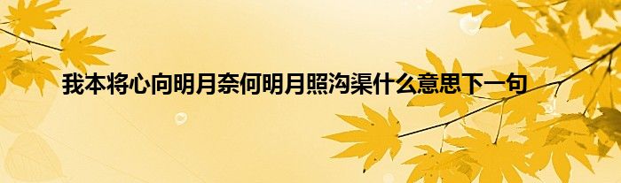 以上就是【我本将心向明月奈何明月照沟渠什么意思下一句】相关内容。