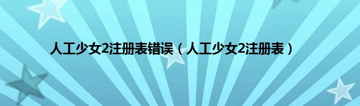 人工少女2注册表错误(人工少女2注册表)