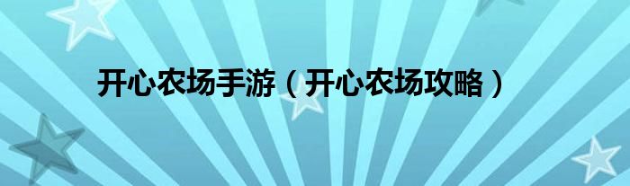 开心农场手游(开心农场攻略)