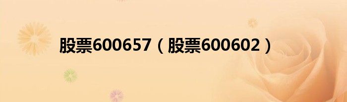 大家好,小问来为大家解答以上问题。股票600657,股票600602这个很多人还不知道,现在让我们一起来看看吧!