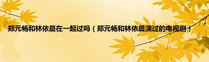 以上就是【郑元畅和林依晨在一起过吗,郑元畅和林依晨演过的电视剧】相关内容。