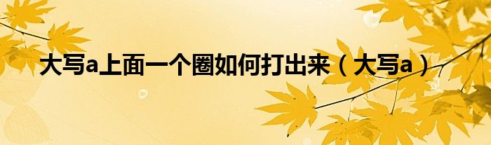 以上就是【大写a上面一个圈如何打出来,大写a】相关内容。