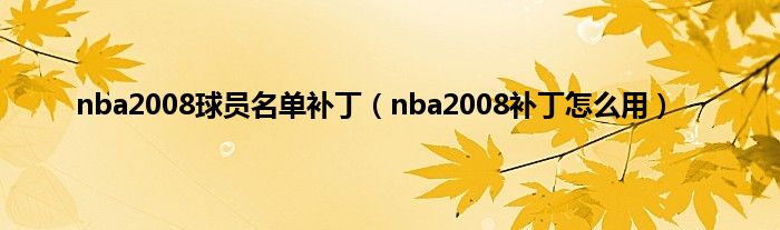 以上就是【nba2008球员名单补丁,nba2008补丁怎么用】相关内容。