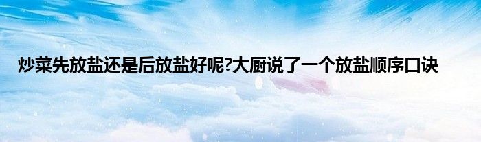 大家好,小问来为大家解答以上问题。炒菜先放盐还是后放盐好呢?大厨说了一个放盐顺序口诀这个很多人还不知道,现在让我们一起来看看吧!