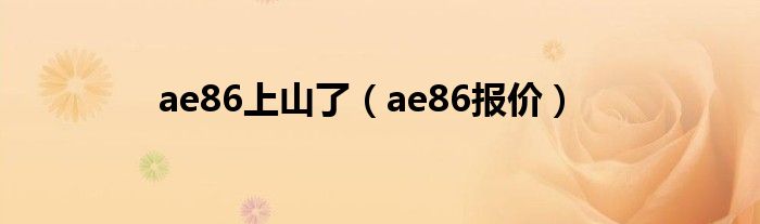 ae86上山了(ae86报价)