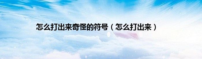 以上就是【怎么打出来奇怪的符号,怎么打出来】相关内容。