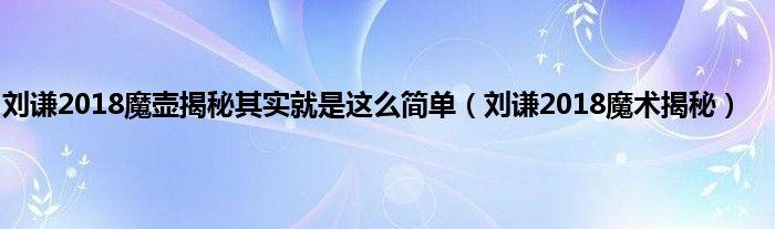 以上就是【刘谦2018魔壶揭秘其实就是这么简单,刘谦2018魔术揭秘】相关内容。