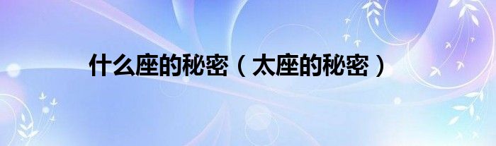 以上就是【什么座的秘密,太座的秘密】相关内容。