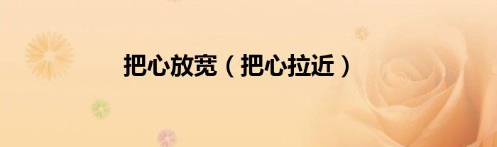 大家好,小问来为大家解答以上问题。把心放宽,把心拉近这个很多人还不知道,现在让我们一起来看看吧!