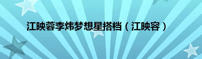 大家好,小问来为大家解答以上问题。江映蓉李炜梦想星搭档,江映容这个很多人还不知道,现在让我们一起来看看吧!