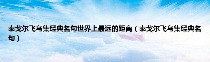 大家好,小问来为大家解答以上问题。泰戈尔飞鸟集经典名句世界上最远的距离,泰戈尔飞鸟集经典名句这个很多人还不知道,现在让我们一起来看看吧!