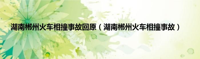 大家好,小问来为大家解答以上问题。湖南郴州火车相撞事故回原,湖南郴州火车相撞事故这个很多人还不知道,现在让我们一起来看看吧!