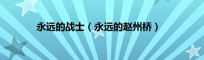 大家好,小问来为大家解答以上问题。永远的战士,永远的赵州桥这个很多人还不知道,现在让我们一起来看看吧!