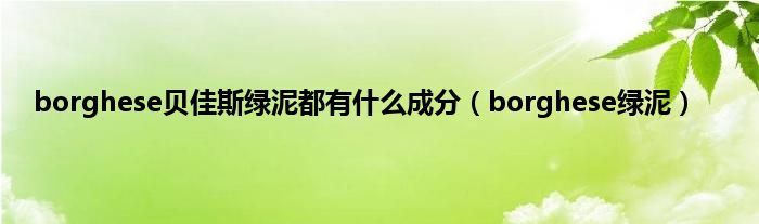 大家好,小问来为大家解答以上问题。borghese贝佳斯绿泥都有什么成分,borghese绿泥这个很多人还不知道,现在让我们一起来看看吧!