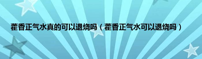 本文,藿香正气水真的可以退烧吗,藿香正气水可以退烧吗到此就分享完毕,希望对大家有所帮助。