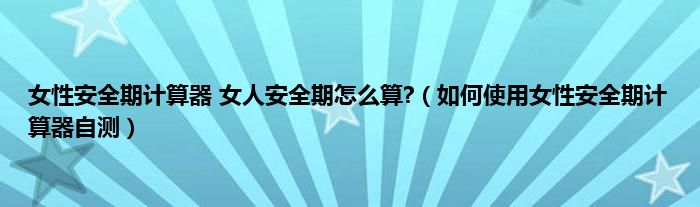 大家好,女性安全期计算器 女人安全期怎么算?,如何使用女性安全期计算器自测很多人还不知道,现在让我们一起来看看吧!