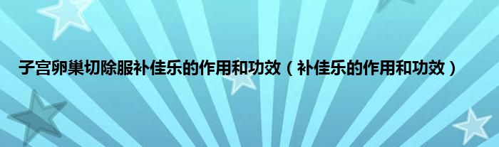 本文,子宫卵巢切除服补佳乐的作用和功效,补佳乐的作用和功效到此就分享完毕,希望对大家有所帮助。