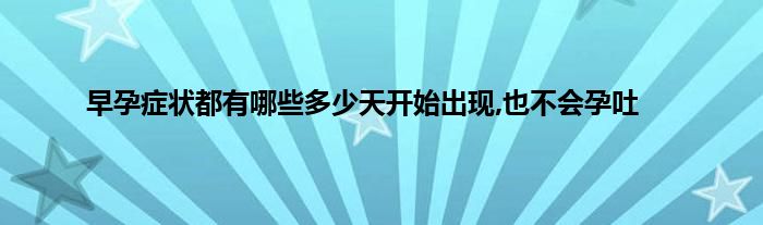 本文,早孕症状都有哪些多少天开始出现,也不会孕吐到此就分享完毕,希望对大家有所帮助。