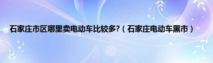大家好,小问来为大家解答以上问题。石家庄市区哪里卖电动车比较多?,石家庄电动车黑市这个很多人还不知道,现在让我们一起来看看吧!