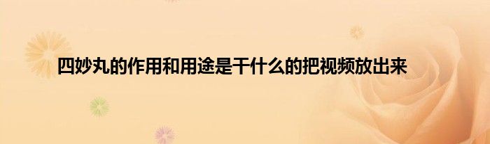 本文,四妙丸的作用和用途是干什么的把视频放出来到此就分享完毕,希望对大家有所帮助。