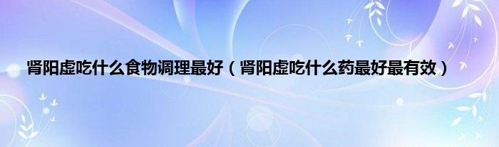 本文,肾阳虚吃什么食物调理最好,肾阳虚吃什么药最好最有效到此就分享完毕,希望对大家有所帮助。