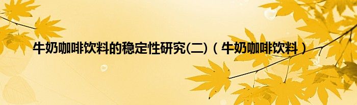 大家好,小问来为大家解答以上问题。牛奶咖啡饮料的稳定性研究(二),牛奶咖啡饮料这个很多人还不知道,现在让我们一起来看看吧!